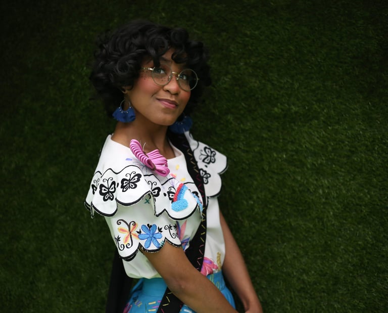 Invite Mirabel to bring joy, warmth, and a message of self-worth to any celebration- perfect for a party full of heart and magic! Ask about adding our other available family members! (Dolores, Isabela, Luisa)