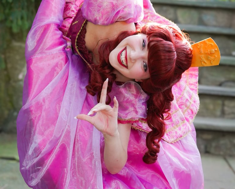 Bring a touch of outrageous fun to your celebration with Cinderella’s ugly stepsister Anastasia! Her over-the-top antics, witty banter, and larger-than-life personality will have guests laughing and joining in the playful mischief from start to finish.